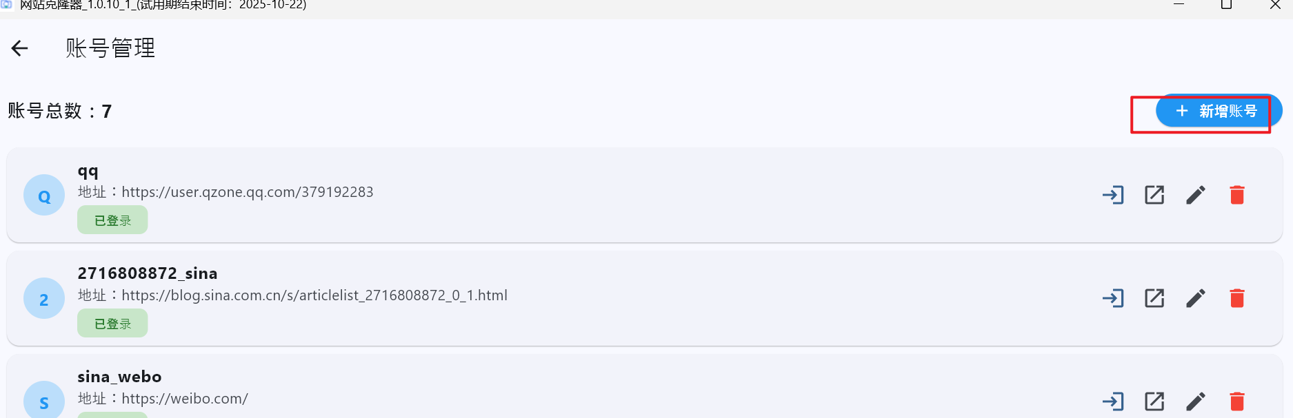 如果需要登录才能抓取数据 ,就需要先新增账号。