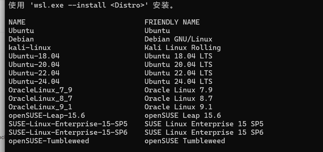 wsl --list --online