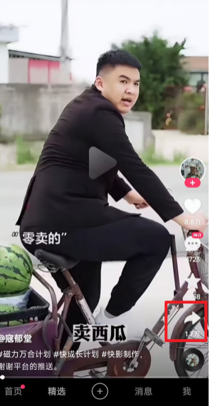 在快手中,选择你觉得好的视频,点分享