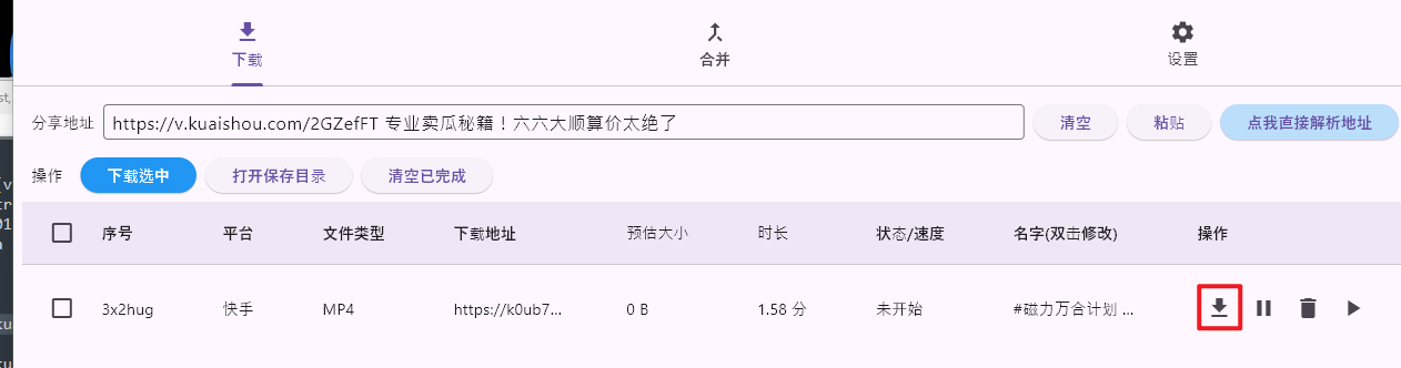2.2 选择原视频(从快手下的视频)