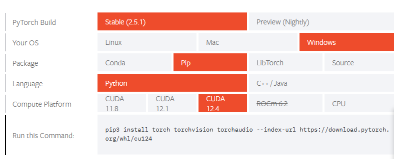 pip3 install torch torchvision torchaudio --index-url https://download.pytorch.org/whl/cu124