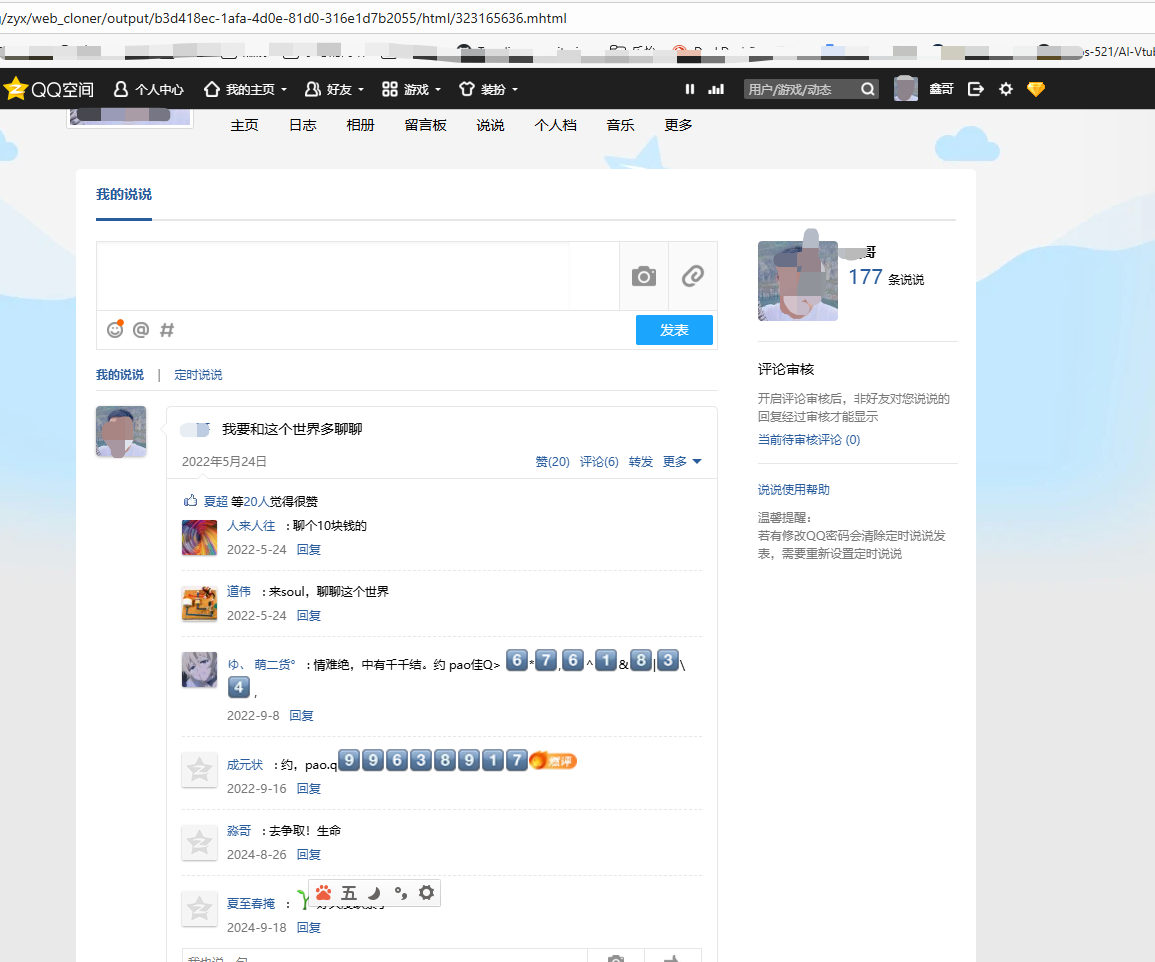 地址是 https://user.qzone.qq.com/{qq号}/311