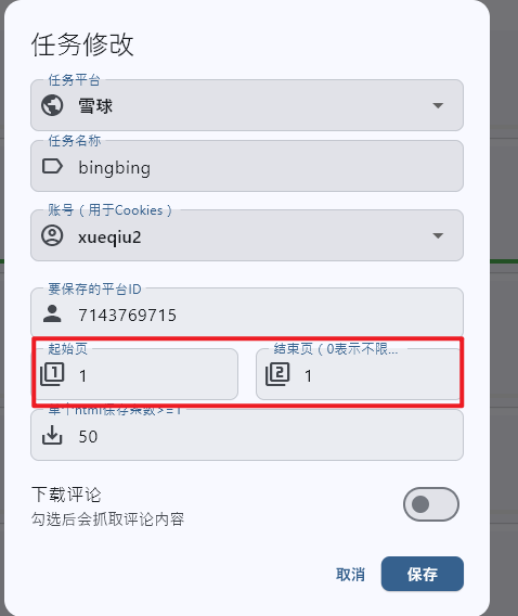 1.8 雪球支持分页范围下载